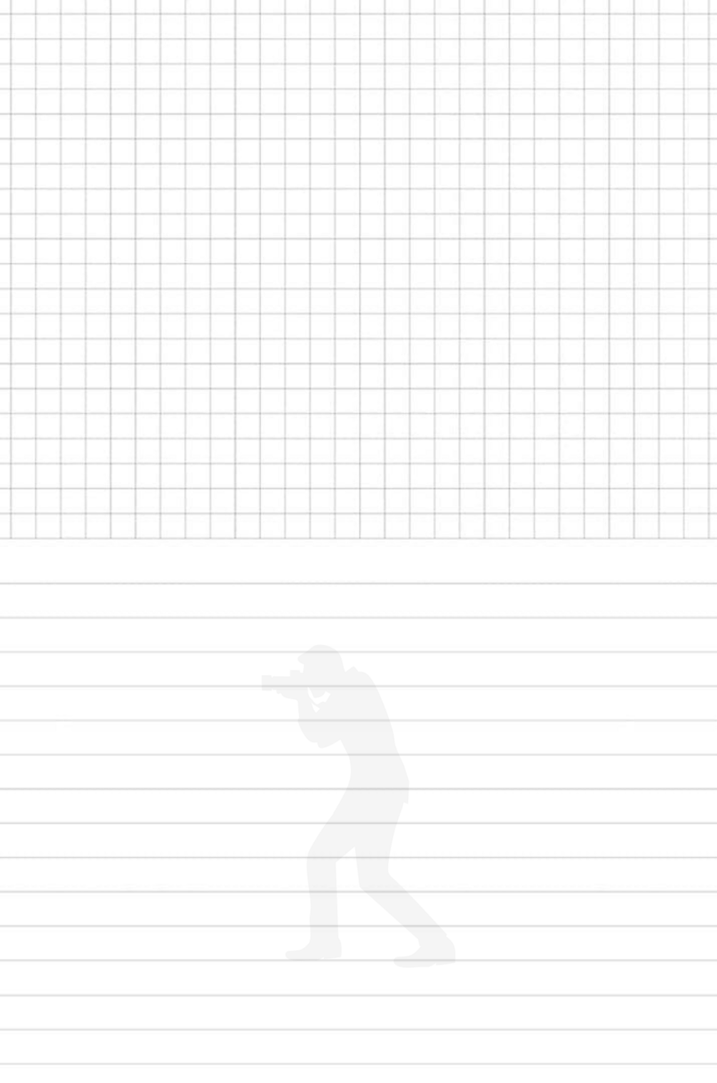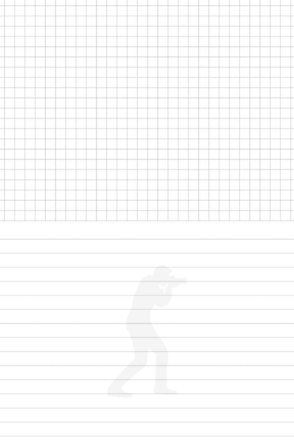 - Each page has the top half with a square grid pattern and the lower half with ruled lines.